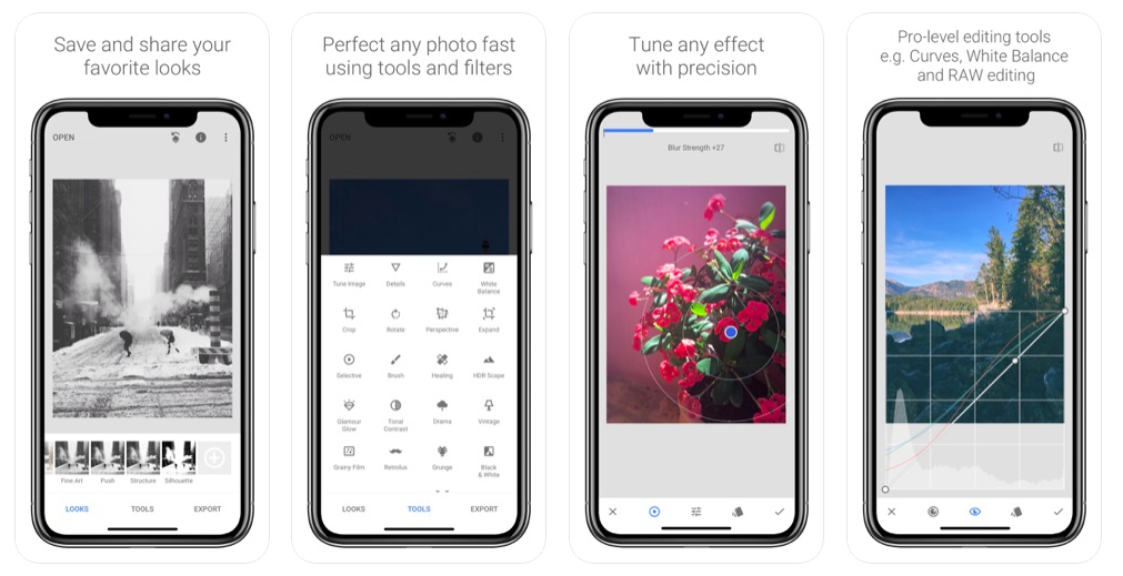 Looking for some trendy photo editing apps for Instagram and your other social media account? Well, Snapseed might be your answer. You can choose to save your favourite looks on the picture and choose to use them later. Beides, change the aspect ratio, perspective, white balance, and more along with multiple effects on these pictures.