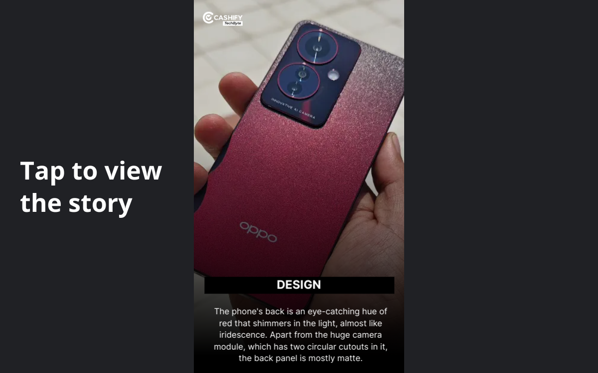 The phone's back is an eye-catching hue of red that shimmers in the light, almost like iridescence. Apart from the huge camera module, which has two circular cutouts in it, the back panel is mostly matte.